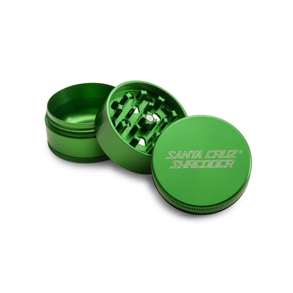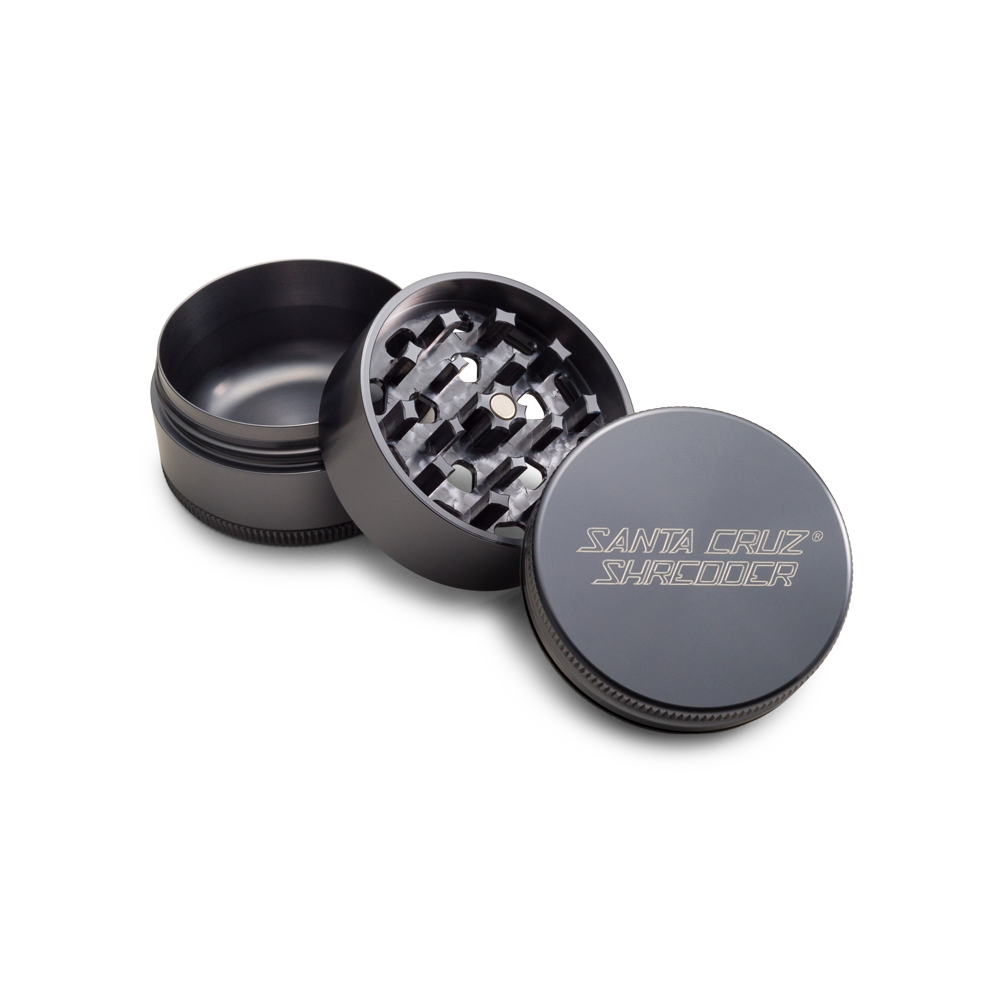 The Santa Cruz Shredder is made in the USA, constructed out of aerospace grade aluminum and manufactured using CNC technology. The grinders are anodized which creates a harder surface which is resistant to scratches, thread damage and tooth damage.